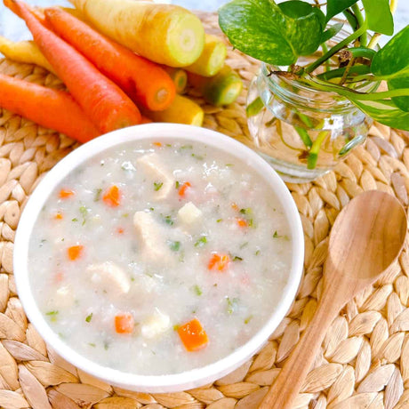 Looking for something a little more lightweight as an alternative to congee? Try one of our porridge options. There’s Chicken and Kale sweet brown porridge", "Beef and Fennel Millet Porridge", "Salmon and Broccoli wild rice gruel" and so many other varieties that you can try. You will love the unique varieties and flavors from our kitchen.