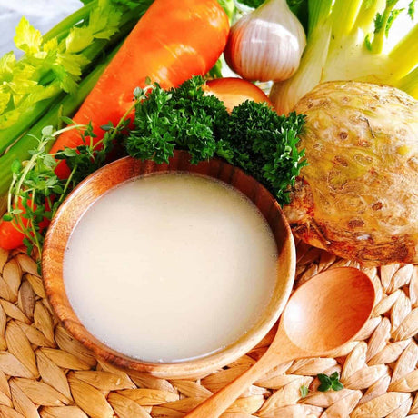 Tossing on a small spoon of mayo or peanut butter will do more good than harm if it can make your child eat a whole bowl of healthy food. If your kid is not into vegetable wraps, try adding flavourful sauces and mayo and make it exciting. If your child hates a homemade banana shake, adding a spoonful of peanut butter can amp it up. And if you’re serving broth, toss in some boiled noodles to add interest and texture. Broths are the healthiest and yummiest option to keep your kids full for a long time so they don't binge constantly. You can check out our options for homemade broth made with the highest quality ingredients.