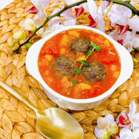 Our conveniently frozen packed soups and broths in Singapore come in handy after a long day at school, work, or play. Not only does a good soup keep you hydrated, but it also fills up your tummy. Well-hidden with a variety of vegetables and made with quality ground beef, our Hearty Italian Meatball Soup serves its purpose as a nutritious comfort food for the whole family. Serve it up with your favourite pasta, breads or even top it up on baked rice with your favourite cheese and a good meal is ready in no time!
